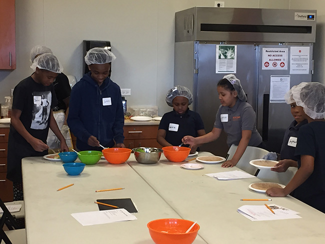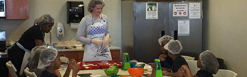 After learning proper food preparation and handling, the children made healthy turkey veggie wraps, complete with homemade ranch dressing.