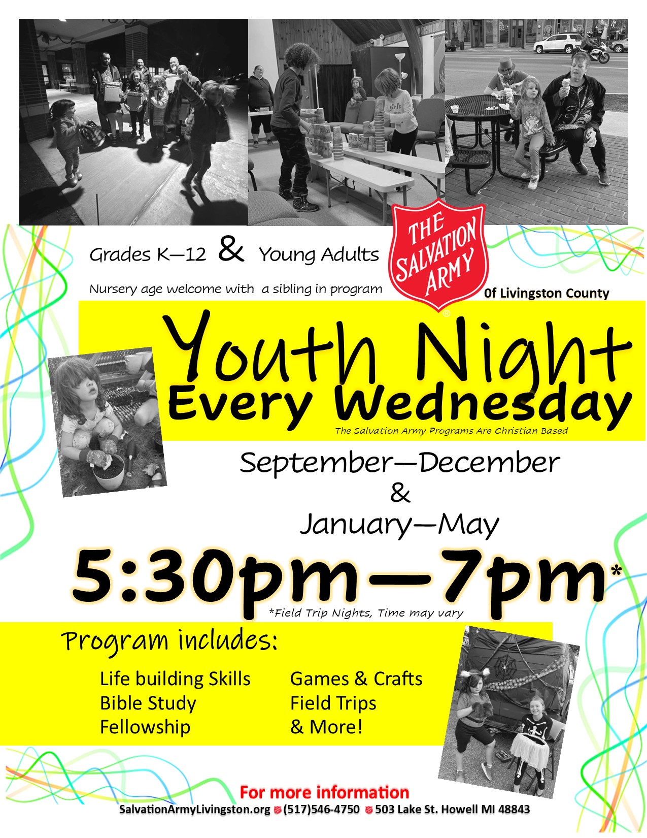 Hey friends! Who's already prepping for back to school season? Well, here at The Livingston County Salvation Army, we are gearing up for the return of our YOUTH NIGHT Program!!!