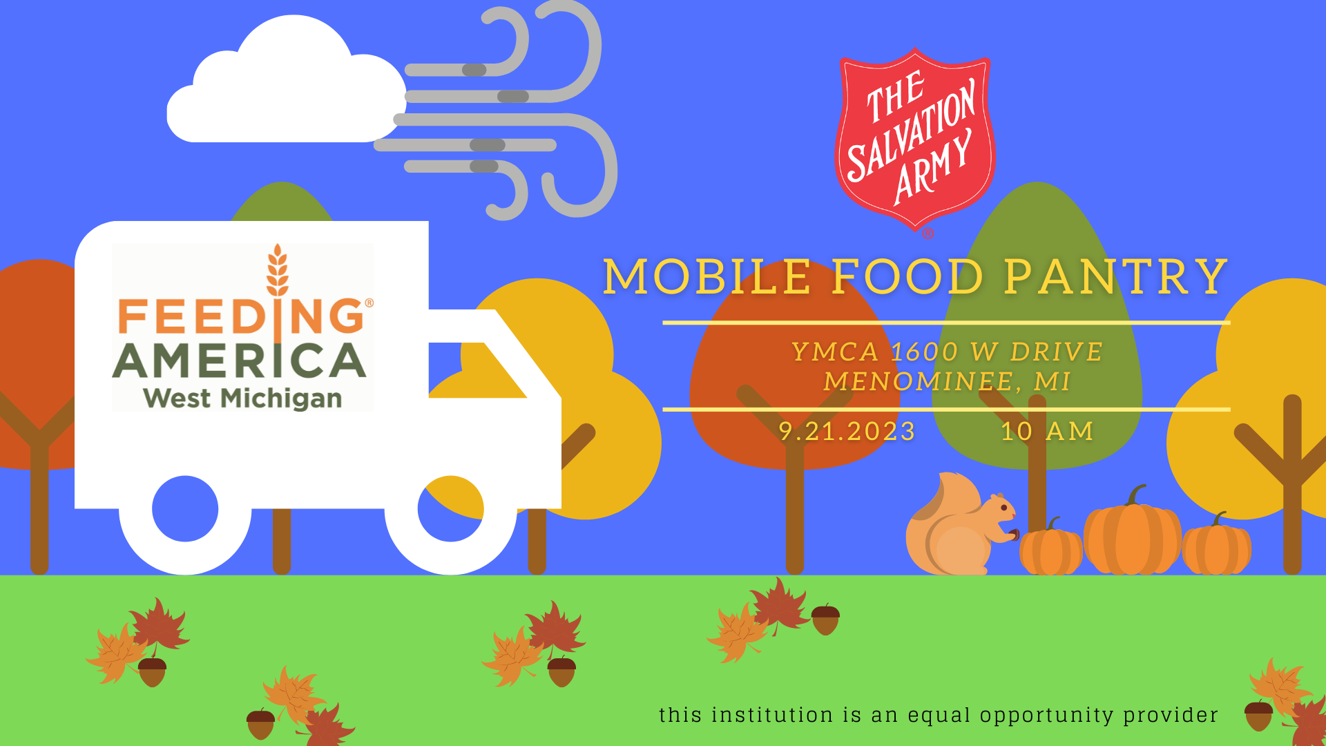 Mobile Pantry September 21st, 10am-noon at the YMCA, 1600 West Drive, Menominee, MI