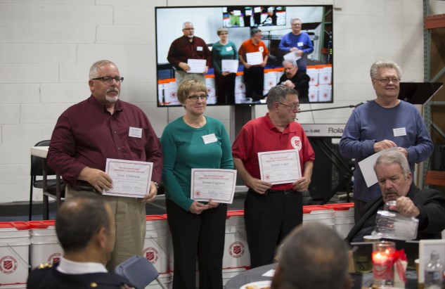 A highlight of the evening was the awarding of the Major Bergie Strand 2016 Volunteer of the Year Award. This year’s award recipient is James Ward from the Adele and Robert Stern Red Shield Center. James has demonstrated a continuous willing spirit to volunteer with Metro EDS since 2005. Embracing a spirit of joy, love, and humility, he serves others. James is available three nights a week to respond to major fires in the greater Chicago area. During 2016 James responded to seven fires including a south side location where three children lost their lives. On that evening, in addition to the familiar response services found at the canteen window, James could be found at the street corner providing comfort to members of a grieving community.