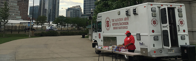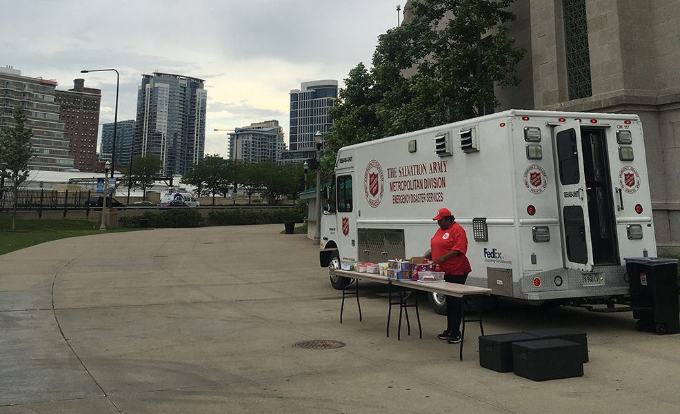 Salvation Army EDS Metro Canteen Service was contacted by the Chicago Police Department to support the first responders during this training exercise June 28, 2017. Vapor Wake® detection is the method and system for detecting explosives and other illicit substances. Vapor Wake working dogs are specifically trained to detect body-worn explosives on a moving target. Unlike traditional EDD teams, trained to view static objects or people as their “productive area”, Vapor Wake dogs are obedient to the odor itself.