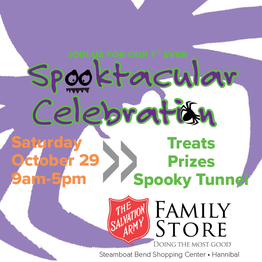 The public is invited to attend The Salvation Army Family Store’s Spooktacular Celebration on Saturday, October 29. This fun-for-all-ages event will be held within the Family Store, 200A Steamboat Bend Shopping Center (just south of County Market), during regular business hours of 9am-5pm.