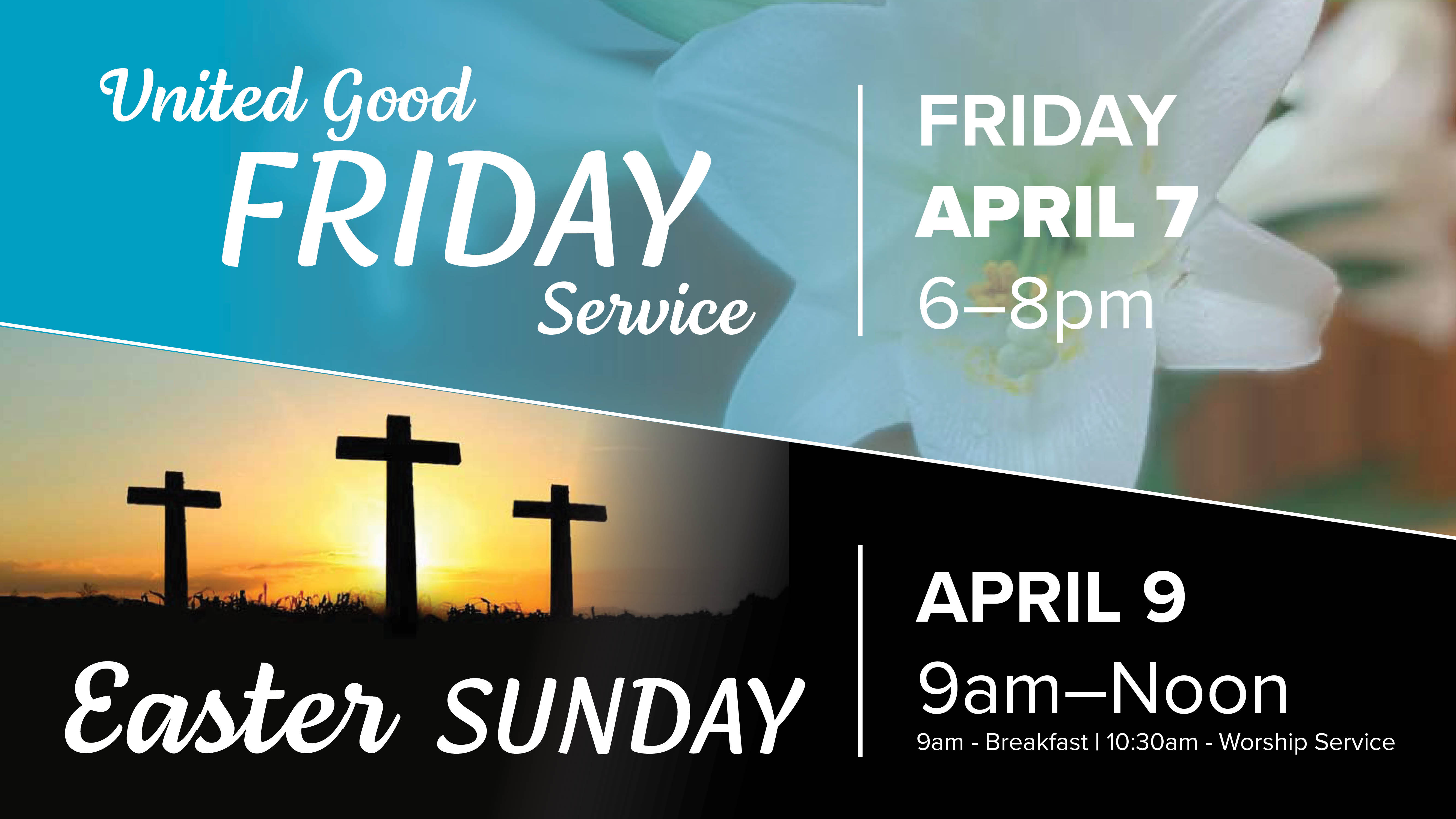 Easter Sunday events will begin at 9am with an Easter breakfast in the Meadows. Easter Worship Service will take place at 10:30am in the Worship Theatre.