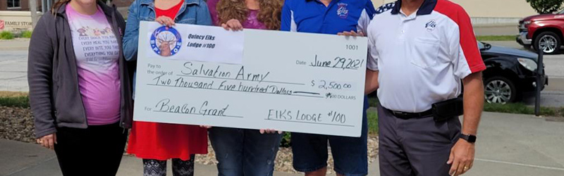 QUINCY ELKS LODGE #100 DONATES $2500 TO SALVATION ARMY