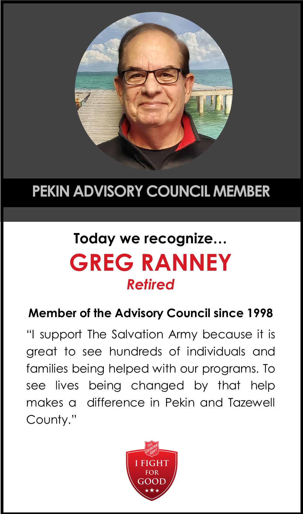 These individuals choose to serve with our mission because they have seen the impacts created for those in need, no matter what the need. Their leadership and generosity are a guiding force that helps The Salvation Army in their community better meet local neighbors in need. Every day they help in Doing The Most Good. We are deeply blessed to have members, such as Greg Ranney who have been crucial in the operations of these advising bodies for many years.