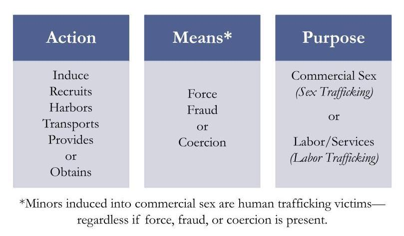 Labor trafficking is defined by the Trafficking Victims Protection Act as the use of force, fraud, or coercion to recruit, harbor, transport, obtain or employ a person for labor or services in involuntary servitude, peonage, debt bondage, or slavery.